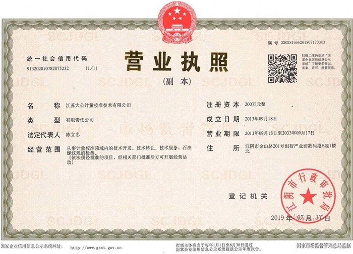 江蘇大公計量校準技術(shù)有限公司是石油螺紋工作量規、石油螺紋單項參數量規、特殊扣螺紋量規的檢測、校準機構!